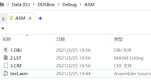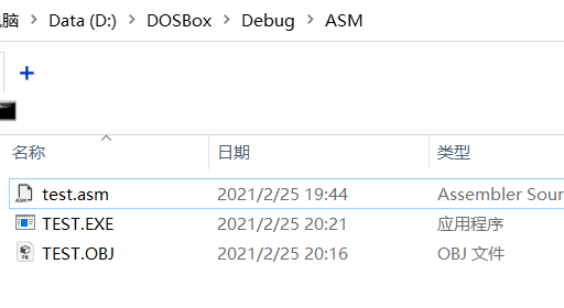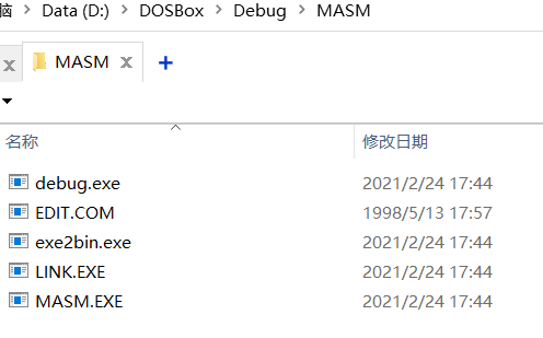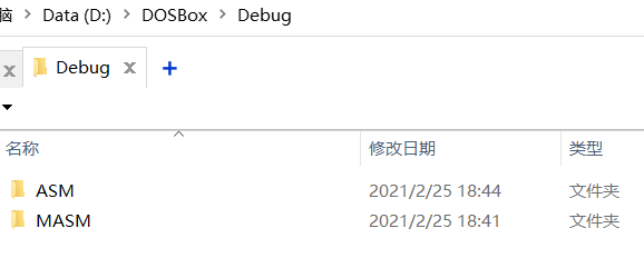 之后再在Debug下创建两个文件夹ASM(放自己写的汇编程序)和MASM(放汇编工具)