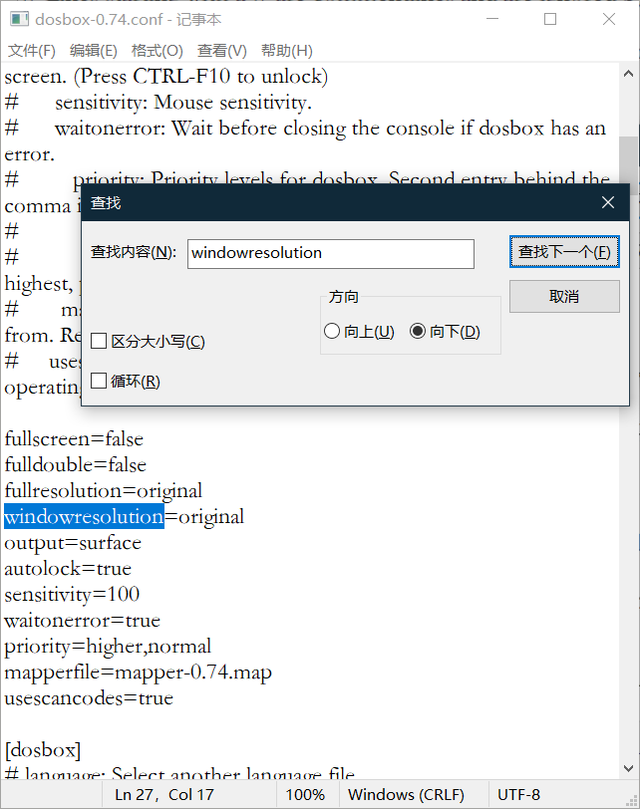 windowresolution=800x500 #800x500为自定义大小,可修改