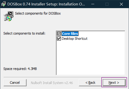 选择安装位置(我选择都是D:\DOSBox)然后点击install即可