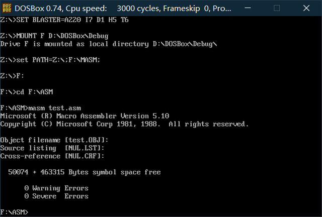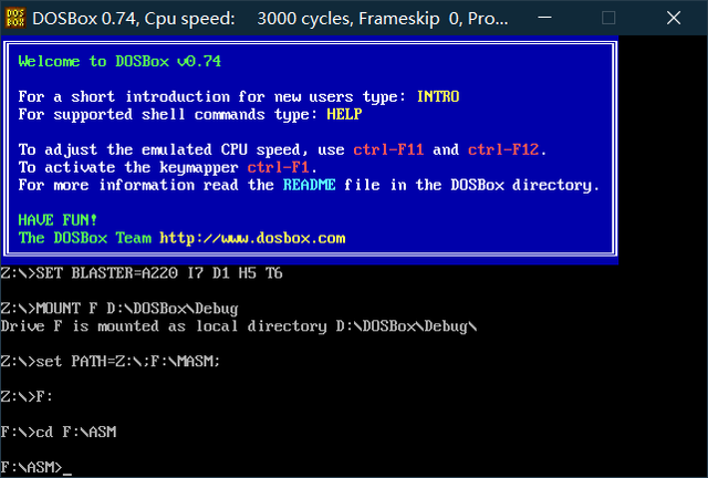 #添加系统临时变量(此时的F代表的是D:\DOSBox\Debug)
