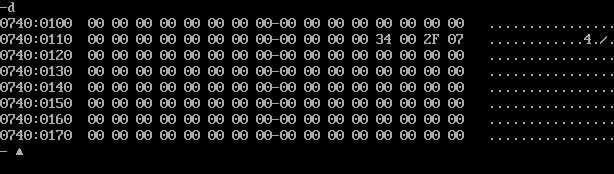 中间是从指定地址开始的128个内存单元的内容,用16进制的格式输出,每行的输出从16的整数倍的地址开始,最多输出16个单元的内容.注意在每行的中间有一个"-",它将每行的输出分为两部分,这样便于查看