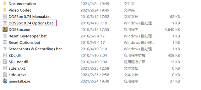 打开后找到DOSBox 0.74 Options.bat这个批处理文件