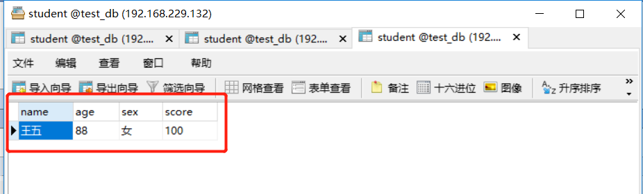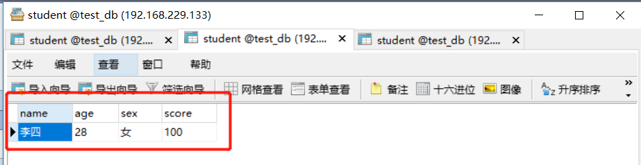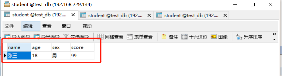 数据准备:准备3个数据库、数据库名为test_db、表名都为student,只是数据不同。