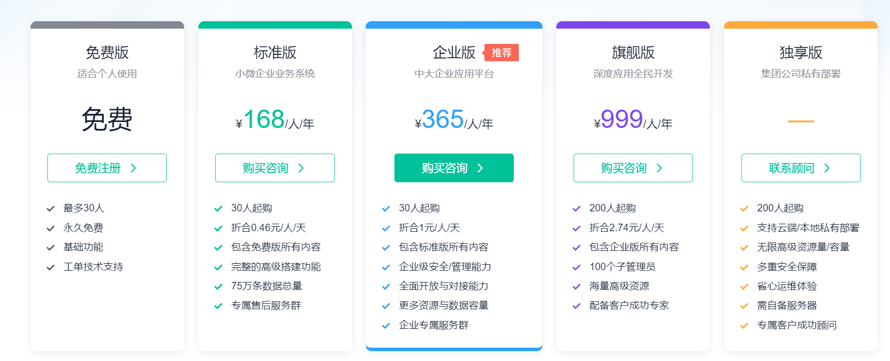 在国外,Outsystems动辄几万美元起步,而国产无代码平台为了打开市场、扶持中小企业,定价非常灵活,有些平台甚至提供免费版或者超低月租。