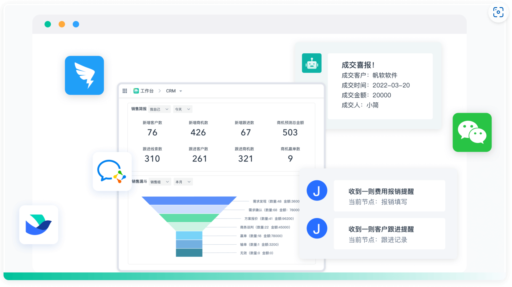 1. 强集成“钉钉/企业微信/微信生态”