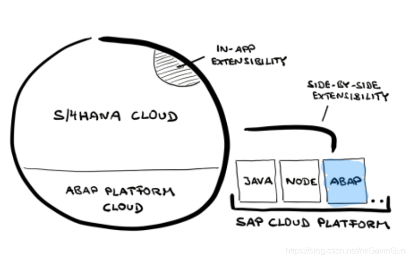 Side-by-SIde Extensibility (外挂式扩展):基于标准程序提供的服务,开发的低耦合的服务或应用程序。之前这种Side-by-Side的扩展是通过SCP上的Java或Node.js环境完成的,现在也可以通过ABAP来完成这项工作。