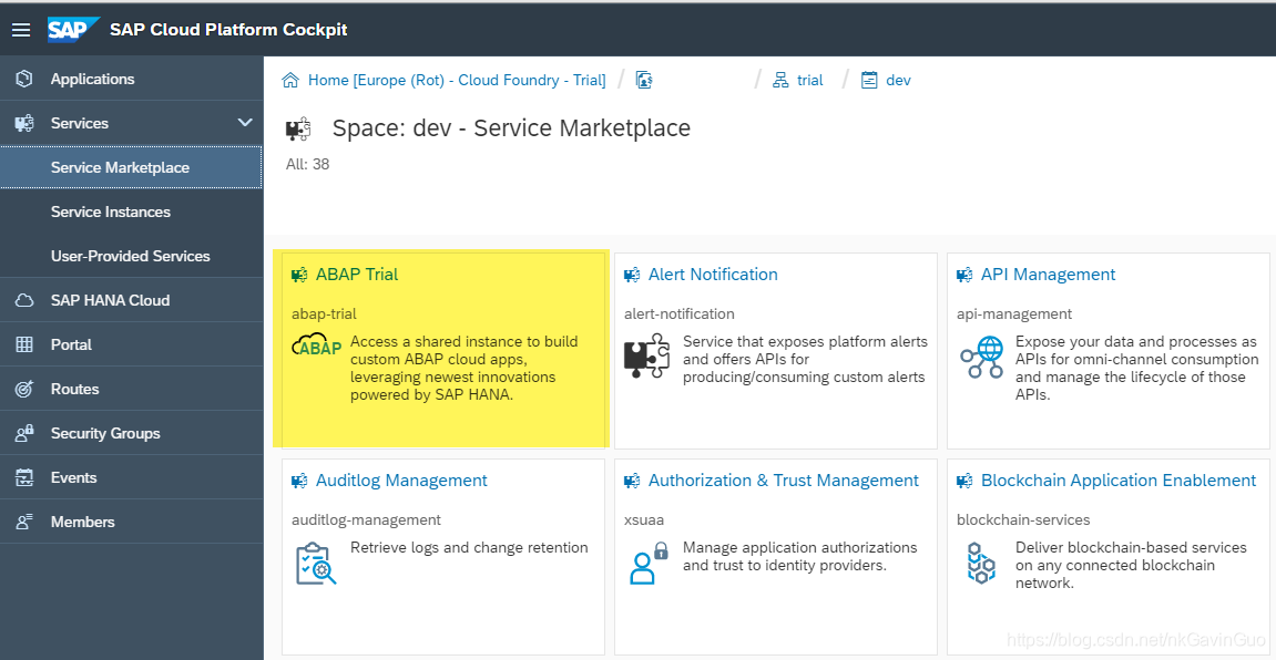 如果已经申请了SAP Cloud Platform上面的Trail用户,则直接使用Cloud Foundry上的ABAP Trail service即可体验ABAP in Cloud这一运行环境。