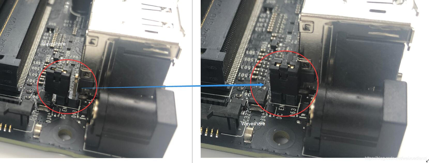 还有这次原厂贴心的改进就是B01版本配送了DC电源的使能跳线帽,当你需要使用DC口供电时必须把这个跳线帽插上去。注意出厂默认只跳一边而已。小伙伴当你发现DC电源接上去没有反应,请不要着急,检查一下是不是这个跳线帽没插好。