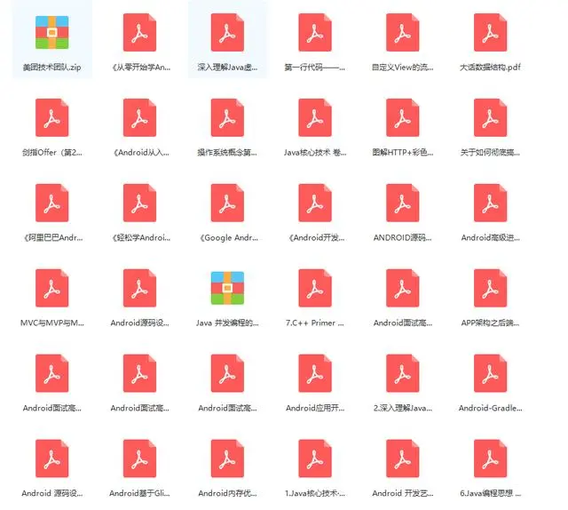 题外话,我在阿里工作多年,深知技术改革和创新的方向,Android开发以其美观、快速、高效、开放等优势迅速俘获人心,但很多Android兴趣爱好者所需的进阶学习资料确实不太系统,完整。今天我把我搜集和整理的这份学习资料分享给有需要的人