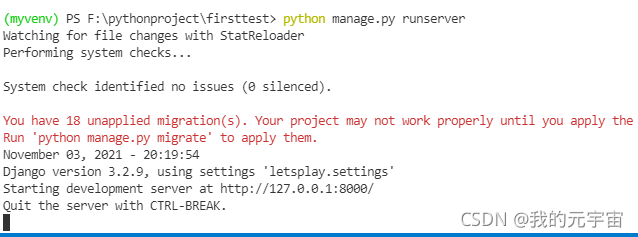 在目录下生成manage.py此文件所在目录就是django项目的根目录所在。