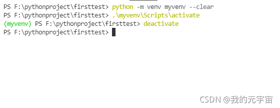 创建、激活虚拟环境和退出,在vscode终端中执行:
