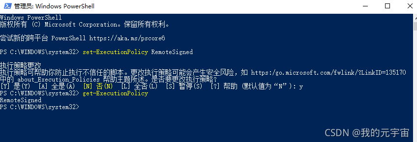 则用管理员权限打开PowerShell,更改本机的脚本执行政策: