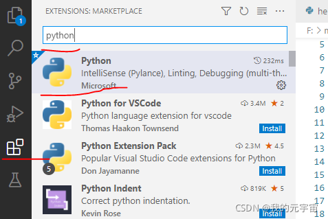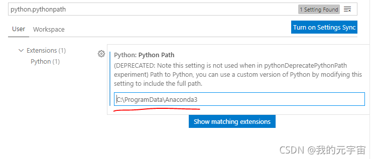 如果在上述的SETTINGS搜不到Python Path,先在扩展市场上安装Python扩展。
