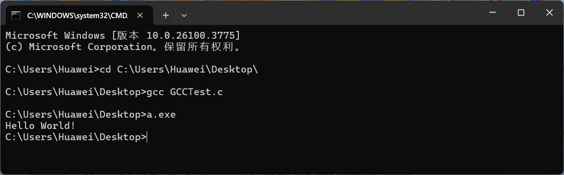(12)此时,桌面上出现了一个“a.exe”可执行文件,在输入这个文件名,回车运行如下图所示。
