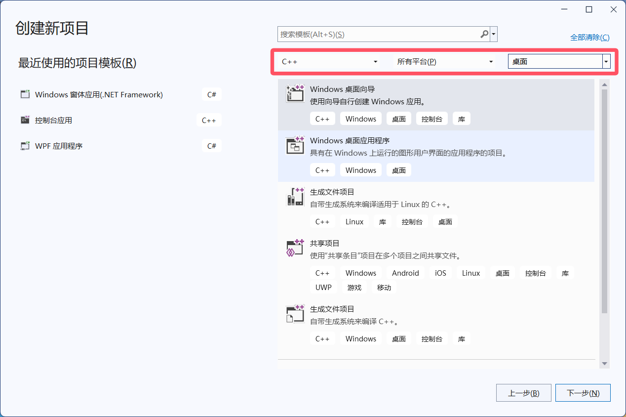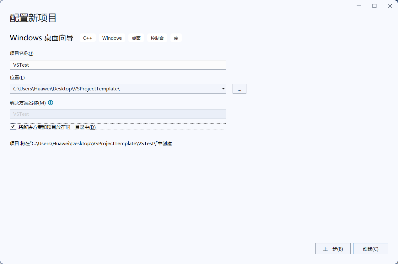 (1)双击下载好的“Visual Studio”,点击“创建新项目”,按照下图所示配置