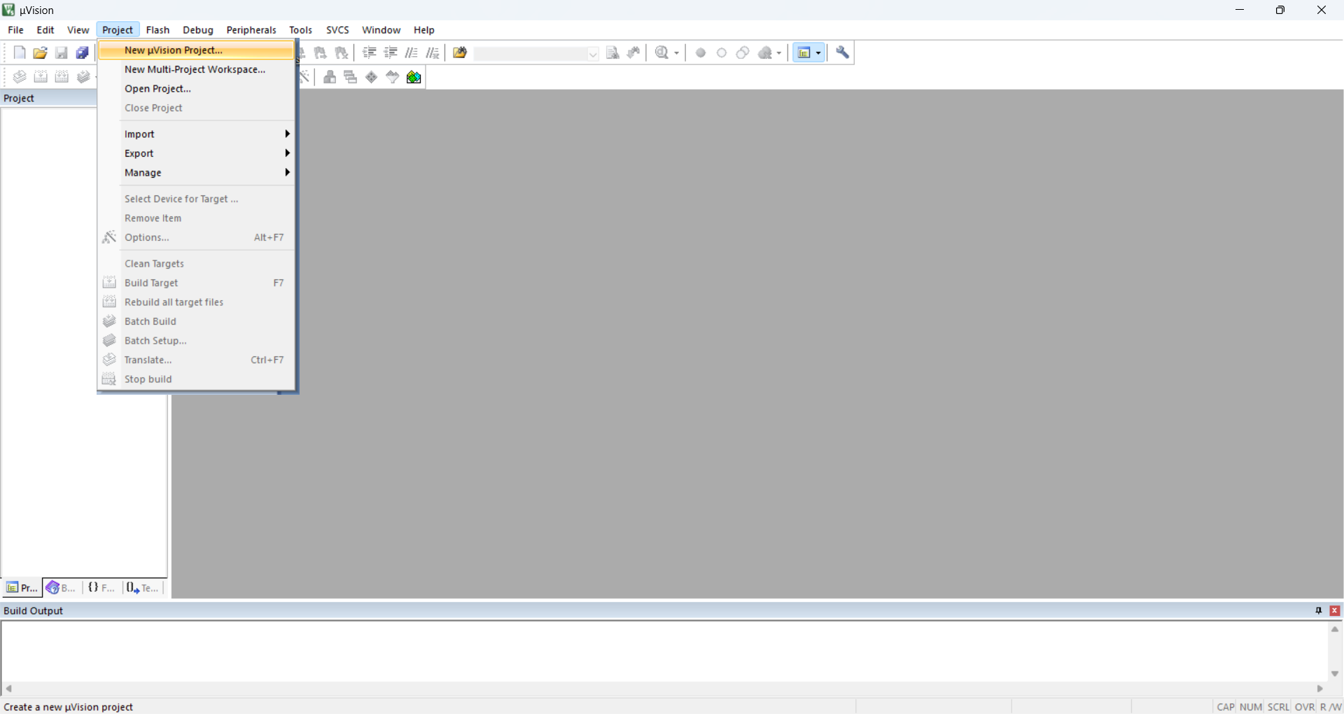 (1)双击进入已经安装好的“Keil”软件,点击“Project——new μVision Project”,如下图所示