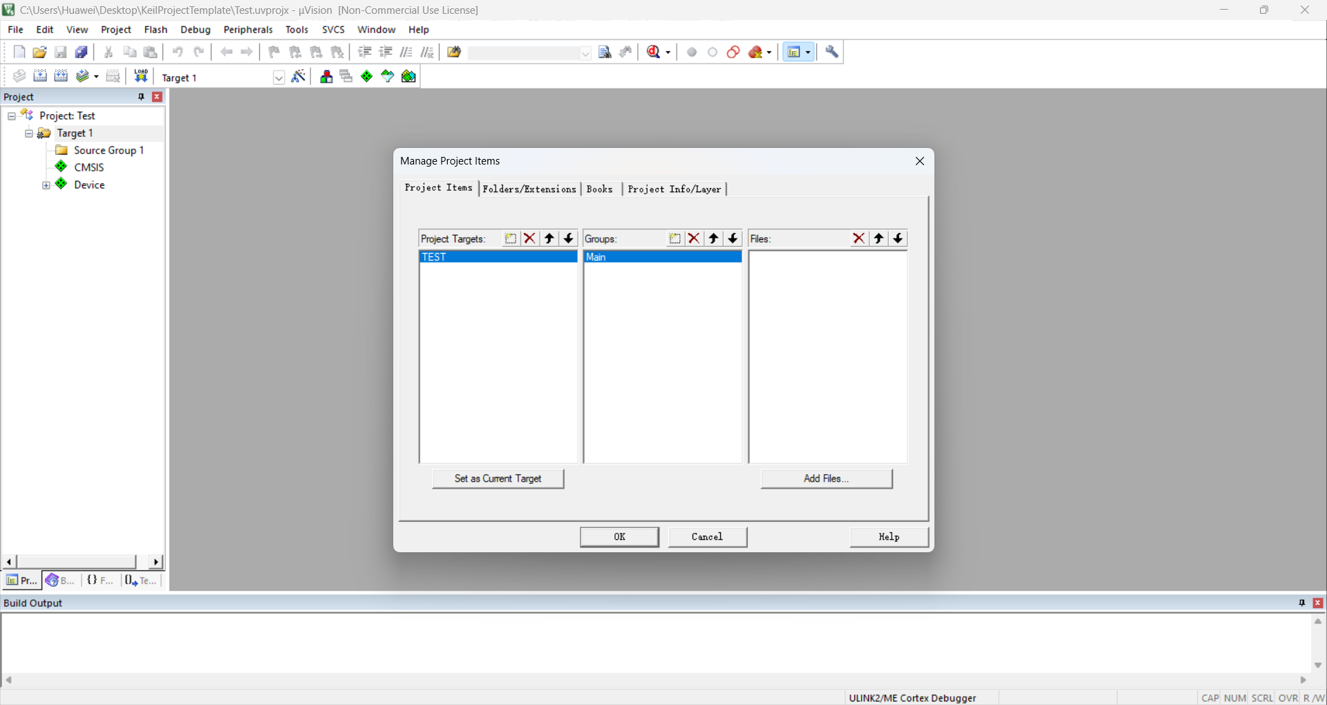 (4)点击文件管理器,可以修改名字,下图中将“Target1”修改为“TEST”,将“Source Group 1”修改为Main,如下图所示,点击“OK”。