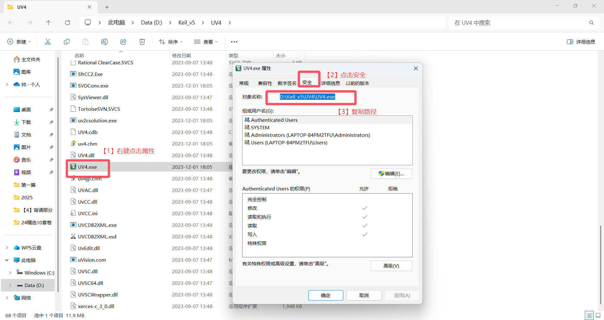 (3)右键桌面上的Keil图标,“打开文件所在的位置”,复制Keil可执行文件的路径,如下图所示。