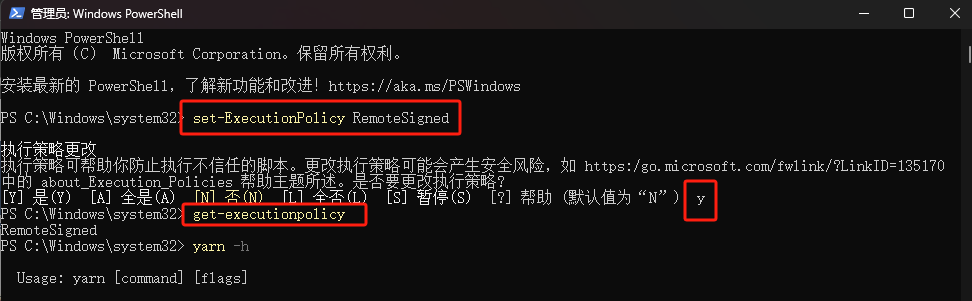 以管理员身份打开 PowerShell, 设置以下策略