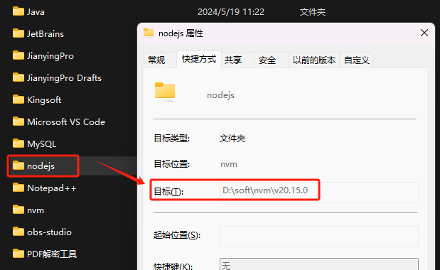 可以在 D:\soft\nodejs 链接到了 D:\soft\nvm\v20.15.0