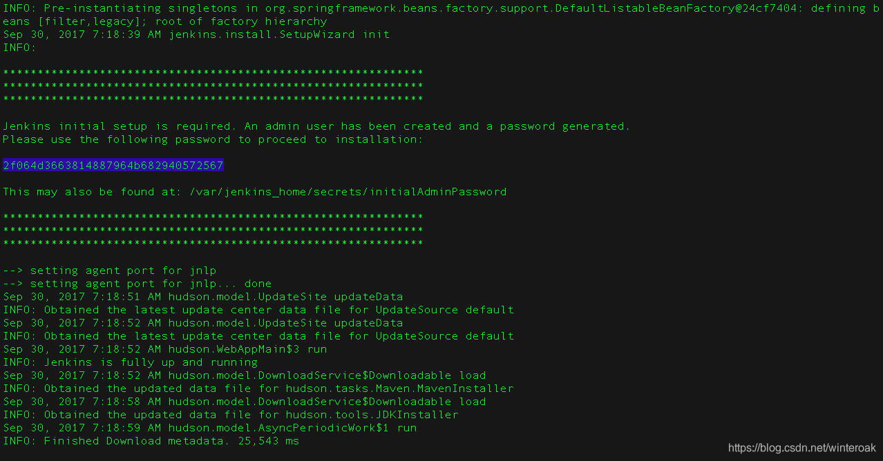 启动完之后,访问:http:/localhost:8080/jenkins,这里换成自己的IP和端口,出现下面的界面: