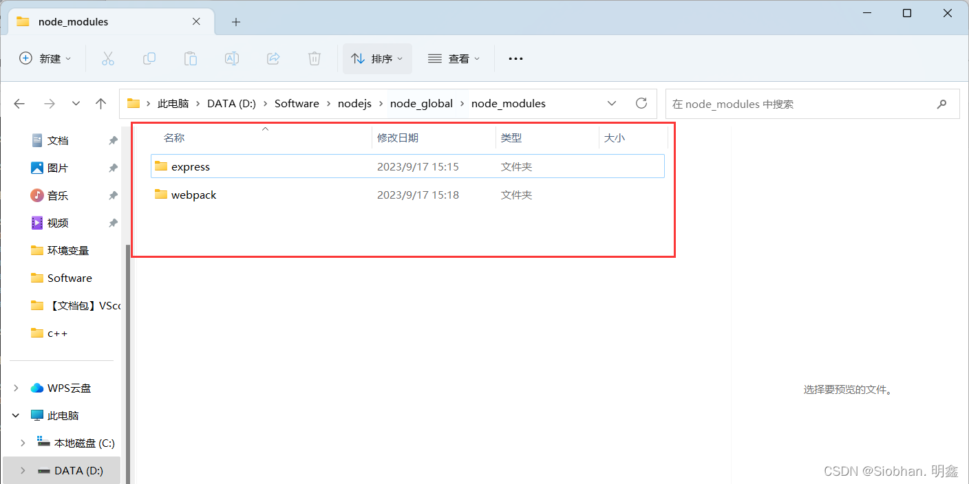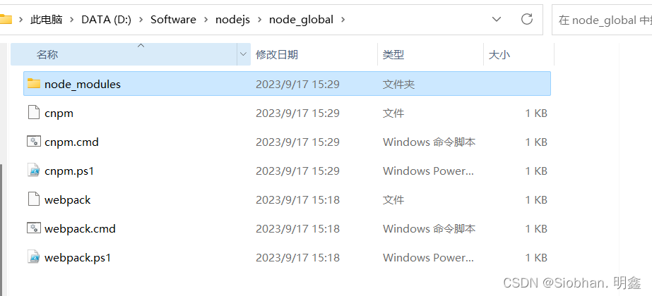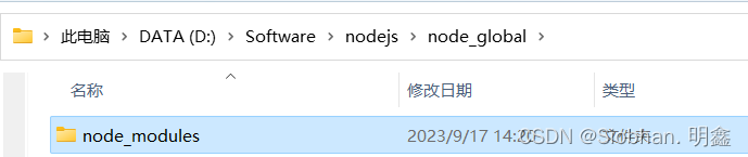 ③在node_global目录下在创建一个【node_modules】空目录文件夹。