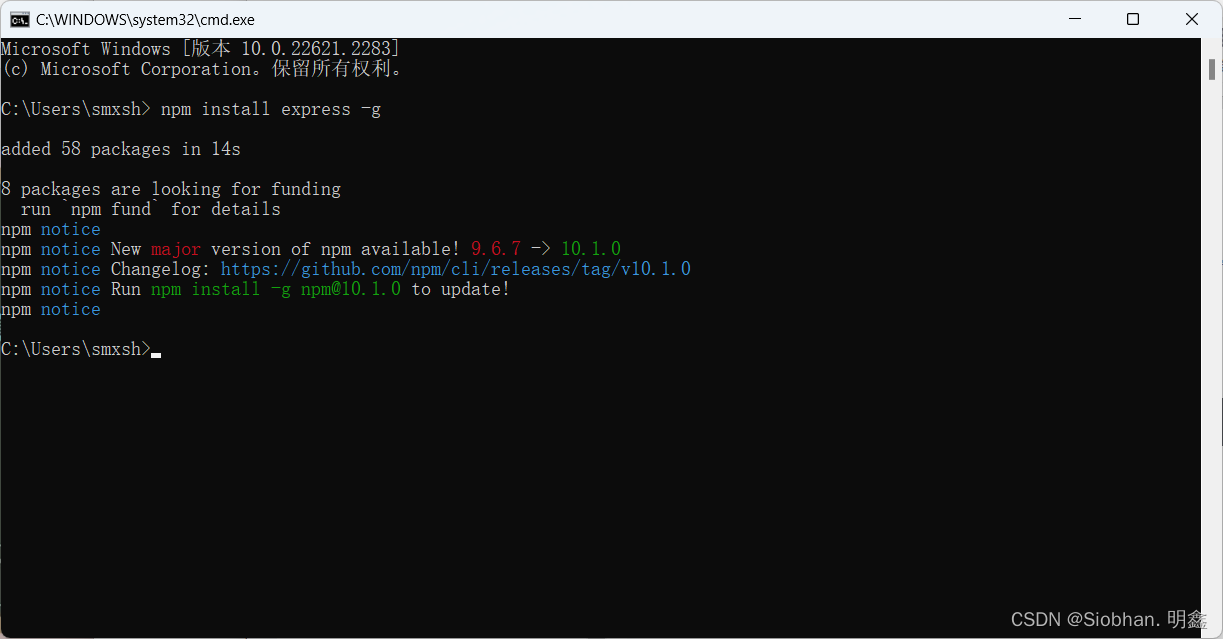 1.安装express,使用npm命令——>