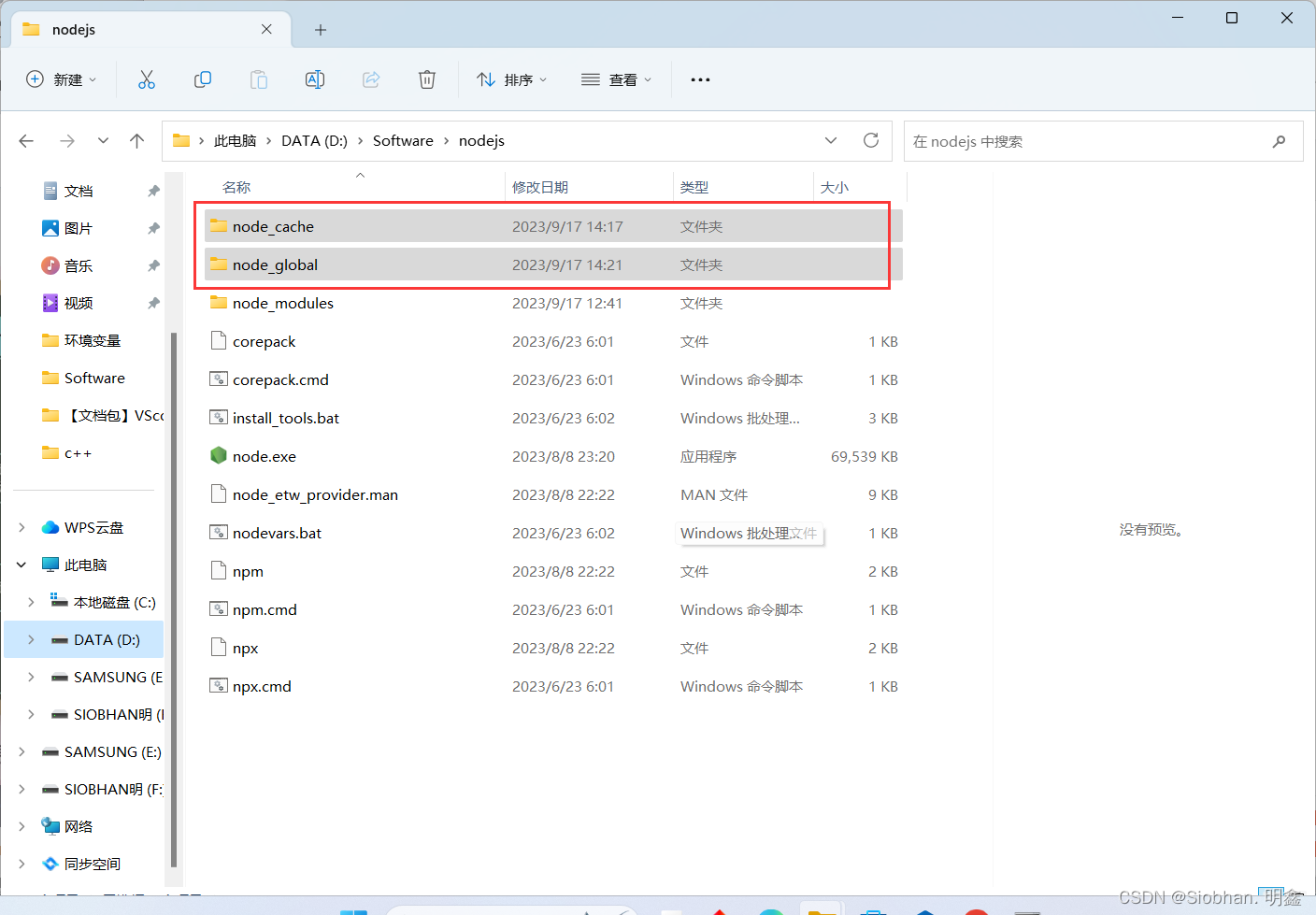 ② 在安装目录下新建两个文件夹【node_global】和【node_cache】