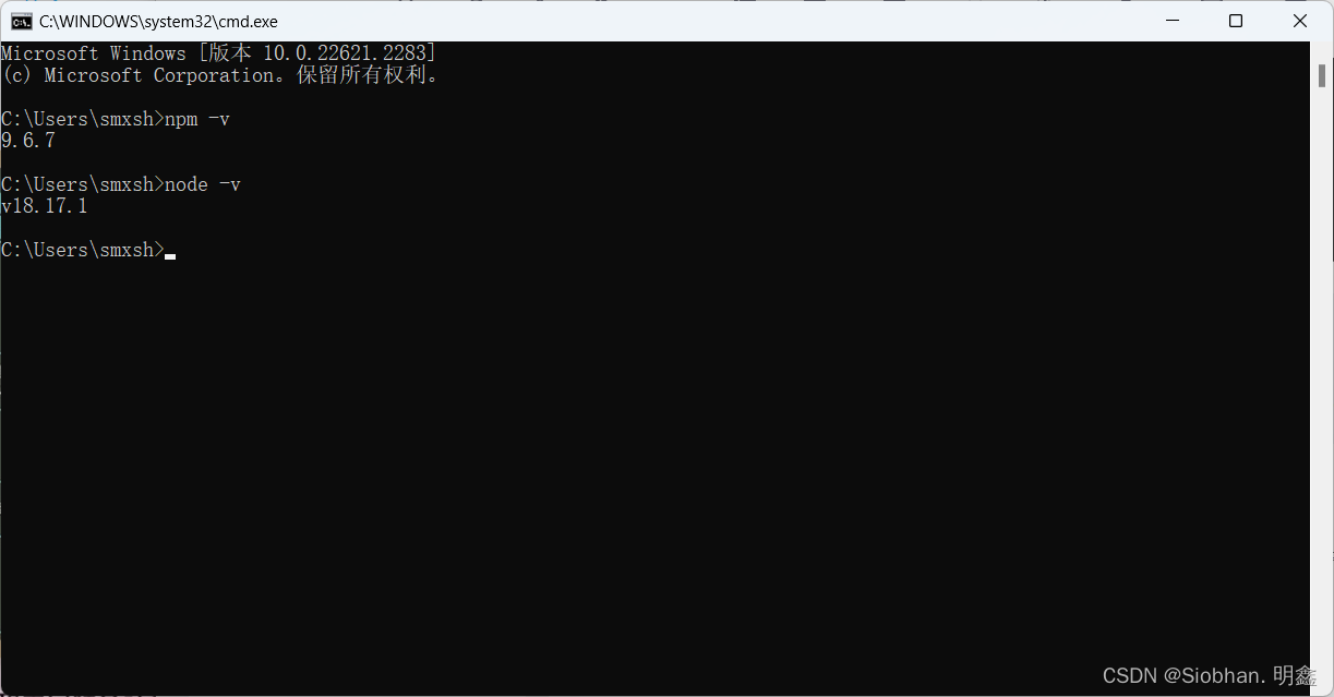 【命令行输入 node -v】【出现版本信息则说明已经安装好了】
