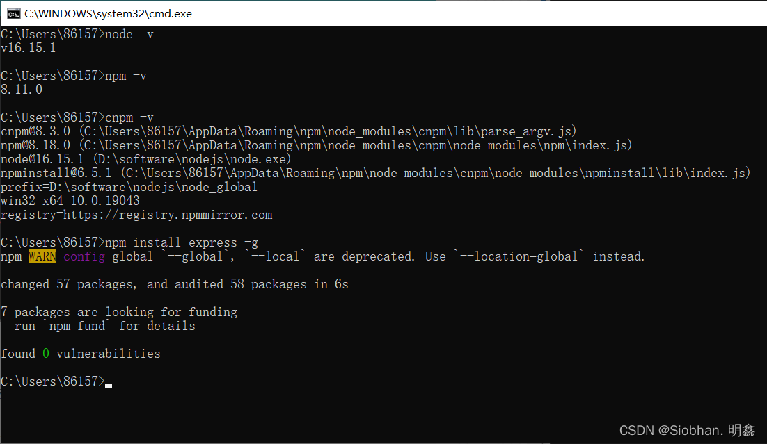 解决npm warn config global `--global`, `--local` are deprecated. use `--location=global` instead.