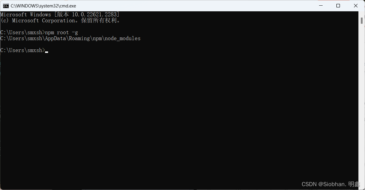能够经过CMD指令npm root -g查看