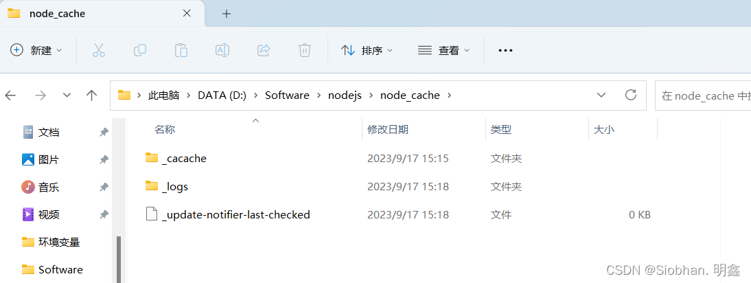 开始配置更改(自定义npm install xxx 存放路径):进入Node安装根目录,创建“node_global”和“node_cache”空目录文件夹——>分别用于当前node资源的安装和缓存