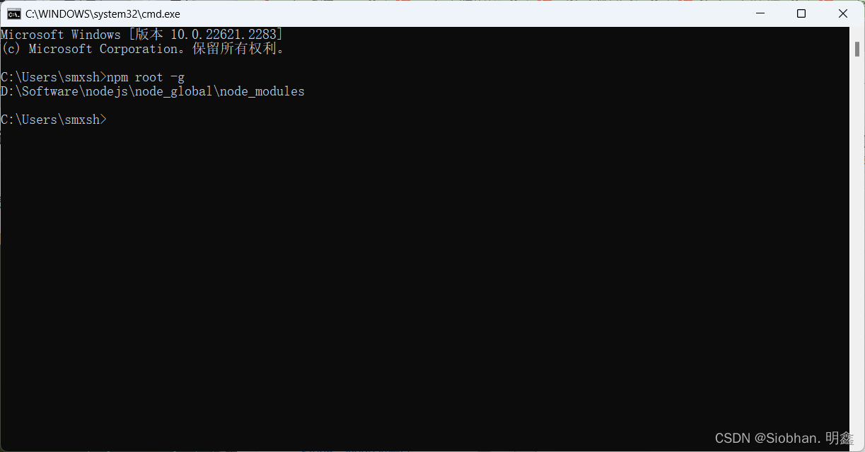 此时,cmd中 npm root -g 的结果更改为D:\Software\nodejs\node_global\node_modules