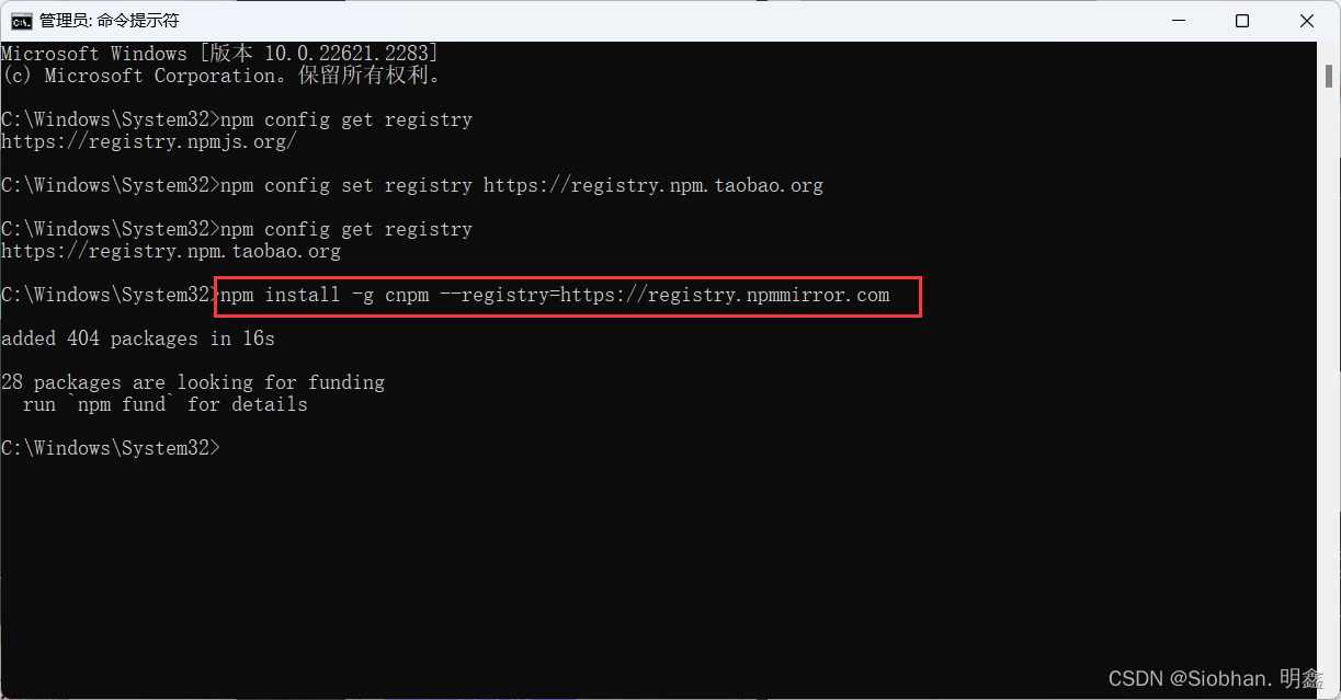 或 npm install -g cnpm --registry=https://registry.npmmirror.com