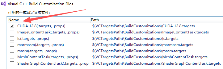 选择工程:生成依赖项—>生成自定义,勾选CUDA。