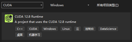 打开Visual Studio,新建项目,选择下图所示的CUDA Runtime