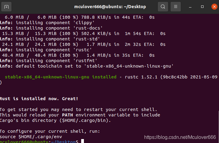 因为rust安装过程中修改了环境变量,所以需要使环境变量生效: