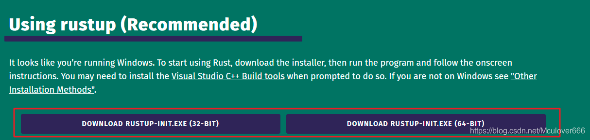 Rust开发环境由工具rustup安装和管理,在官网下载该工具。