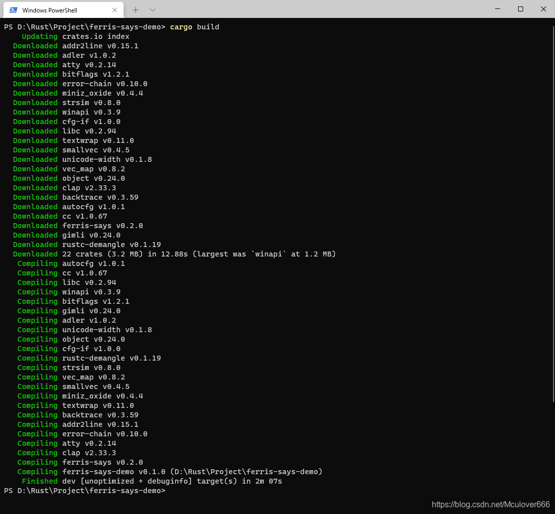 运行编译命令,Cargo会自动安装该包及其依赖包: