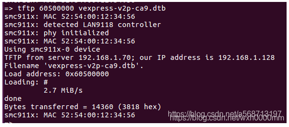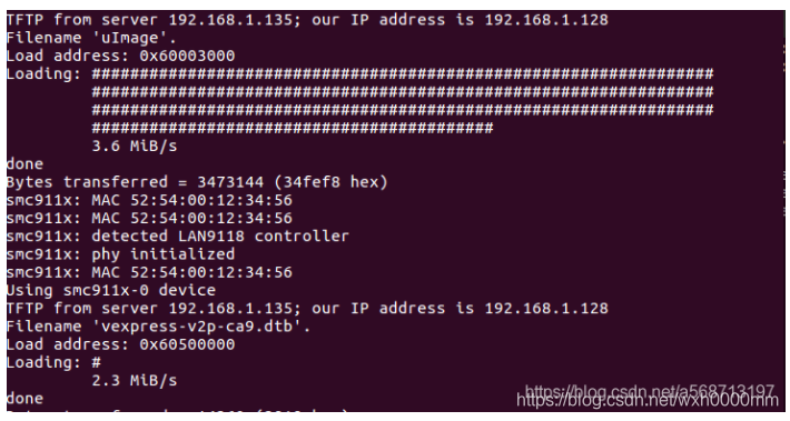 会自动从tftp服务器下载uImage和vexpress-v2p-ca9.dtb并写入正确位置