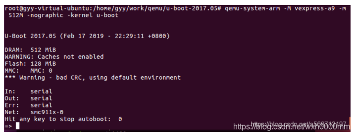 qemu-system-arm -M vexpress-a9 -m 512M -nographic -kernel u-boot