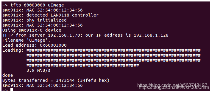 下载uImage:tftp 60003000 uImage