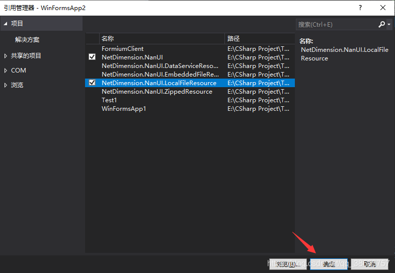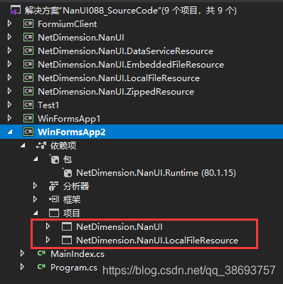 点击解决方案--->添加--->现有项目,选中NetDimension.NanUI.csproj,将NetDimension.NanUI 项目导入到你的项目中