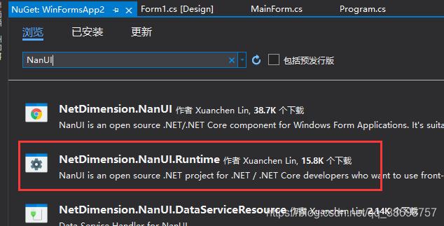 下面添加NanUI的Runtime 扩展包,这个主要是给项目生成CEF包用的,