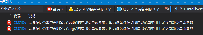 另一个错误,和上面的错误一样,在Initialize方法里,原本就有一个args参数,这里将args改为_args即可。