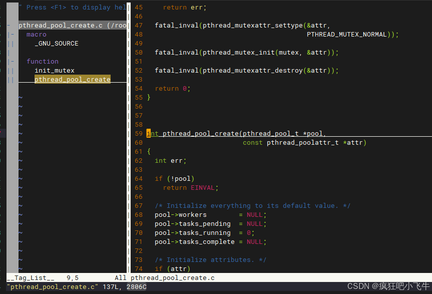 示例如下图,输入Ack pthread_pool_task 就会显示grep显示的结果。ctrl + w 切换窗口,选中某一行,点击回车,就会跳转到对应文档的对应位置。