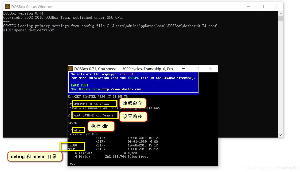 以下是搭建基于 DOSBOX + MASM32 的汇编语言开发环境记录。