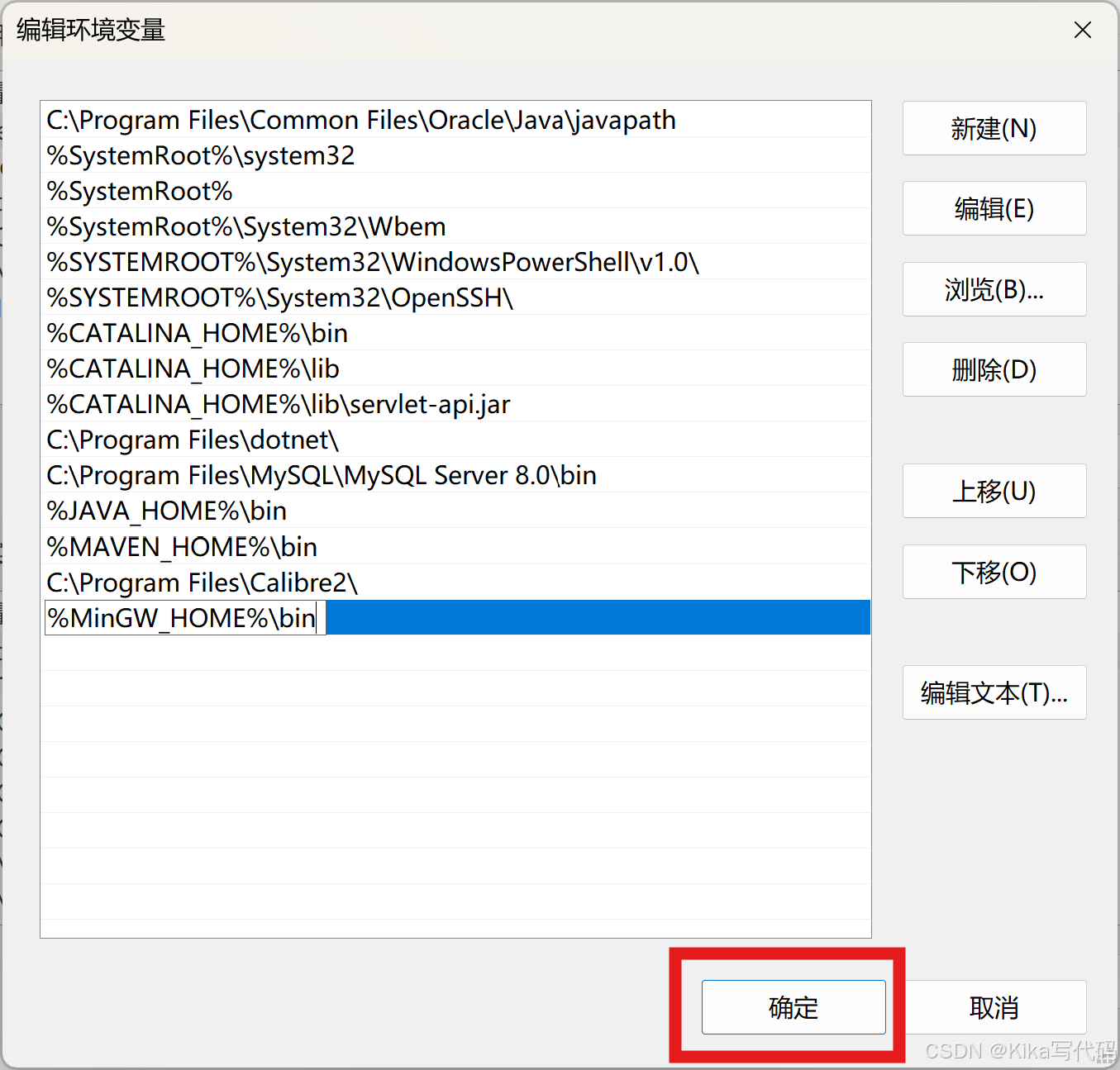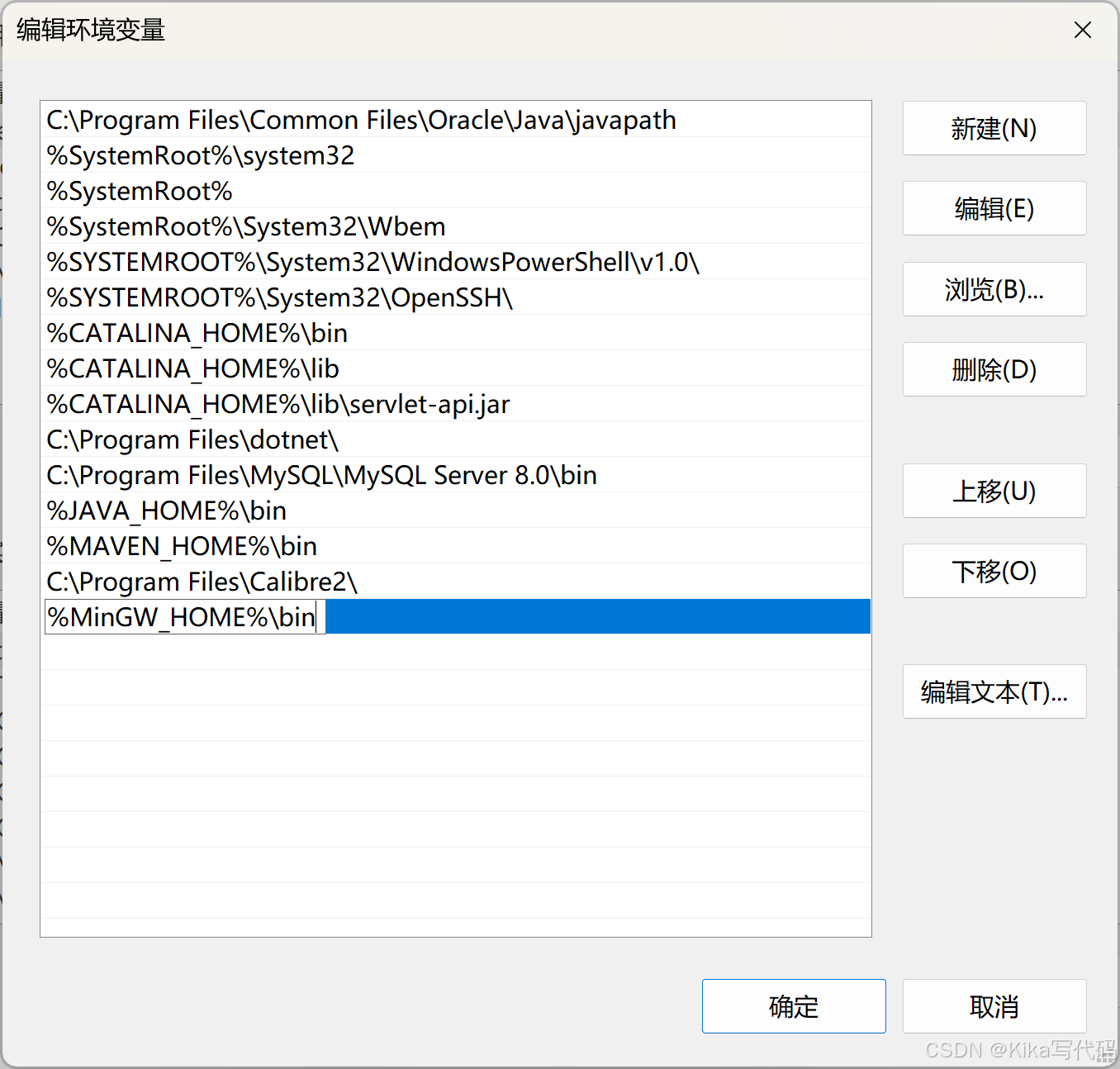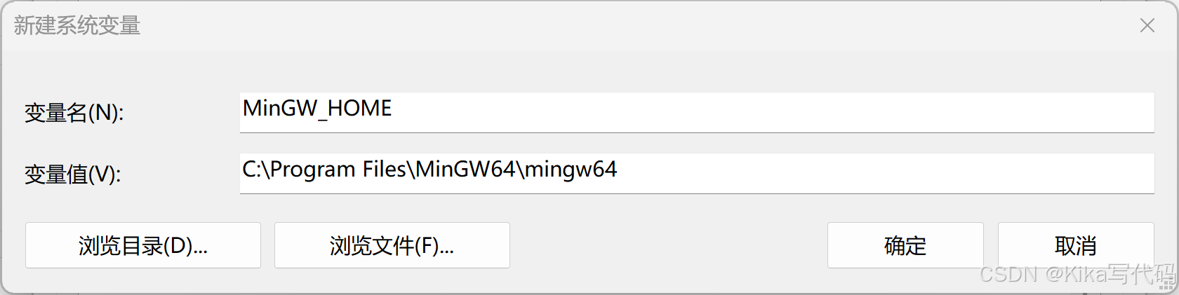 【变量名】我这里是MinGW_HOME,【变量值】是上文自定义的安装路径: