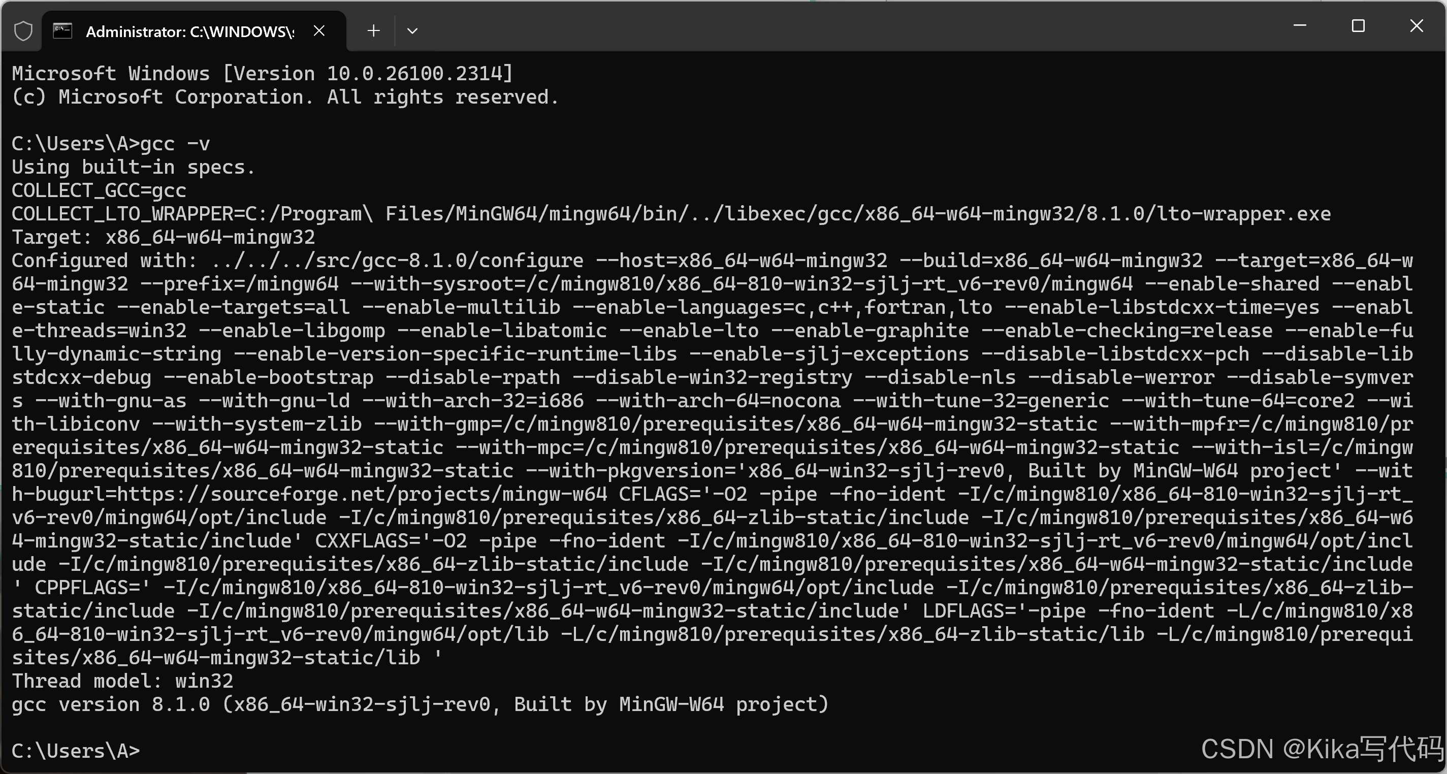 验证MinGW是否安装成功