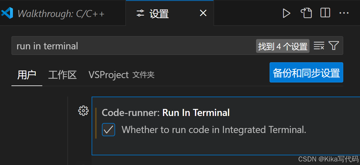 打开设置,找到"run in terminal",勾选该选项(否则程序无法在运行时使用键盘输入数据)